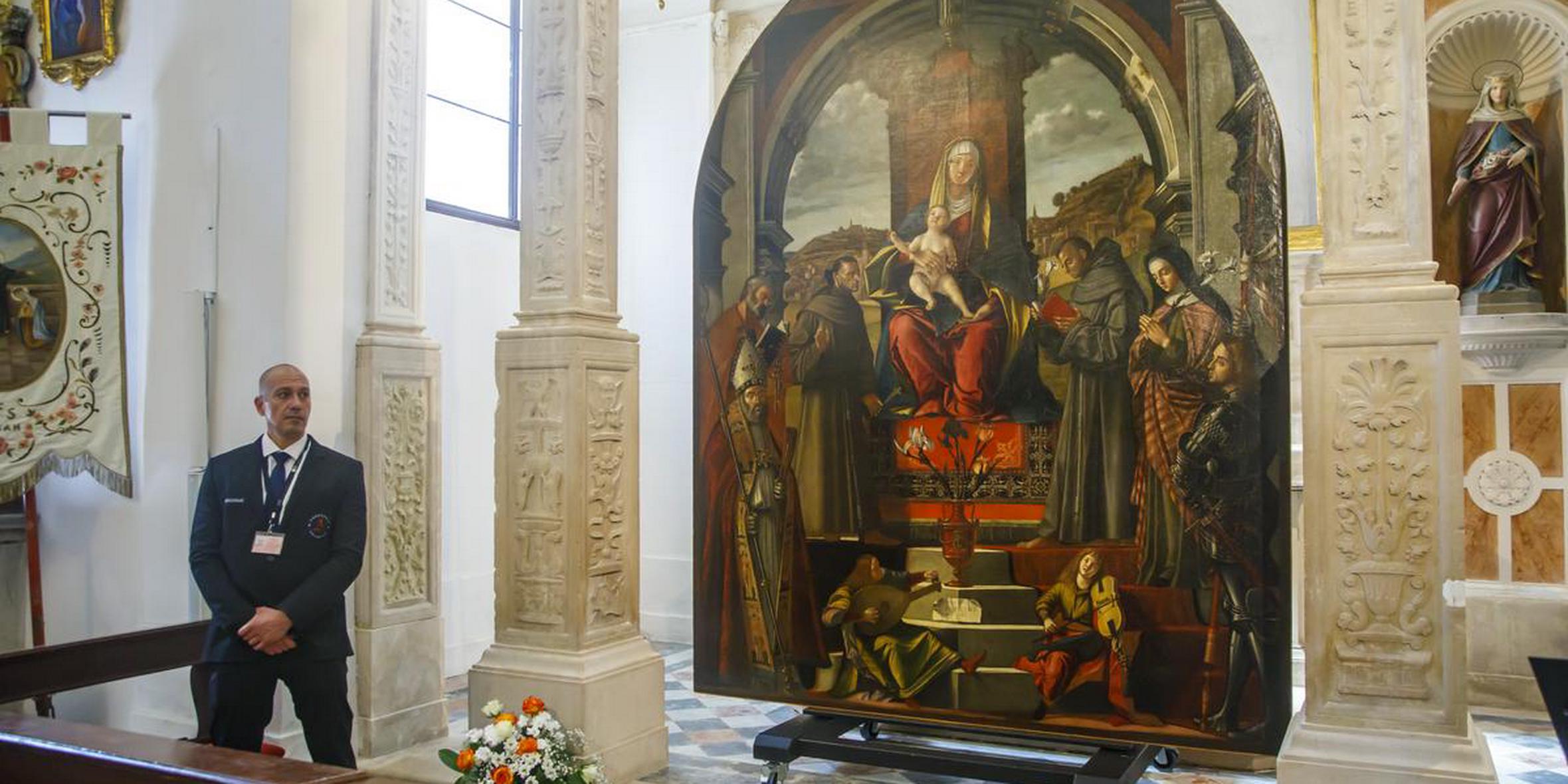 Come ci ha spiegato una delle restauratrici che si prenderanno cura dell'opera il primo e fondamentale compito sarà quello di preparare la cornice e predisporre il dipinto per il montaggio. Logicamente la Pala verrà anche esaminata con metodi non invasivi, in modo da creare un archivio dedicato all'opera che potrà essere utilizzato in futuro per monitorare lo stato di conservazione del dipinto. La Pala, ci tiene a sottolineare l'esperta, è giunta in condizioni molto buone e quindi si tratta solo di prepararla per l'affissione, ossia di proteggere il retro, di realizzare i supporti adeguati per il dipinto e per la nicchia dove sarà appeso nel totale rispetto della collocazione originale.